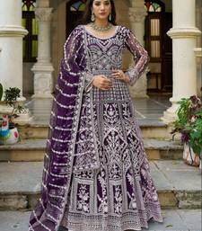 Purple dori stonw work net fabric full stitched wedding party wear anarkali gown salwar suit with net dupatta