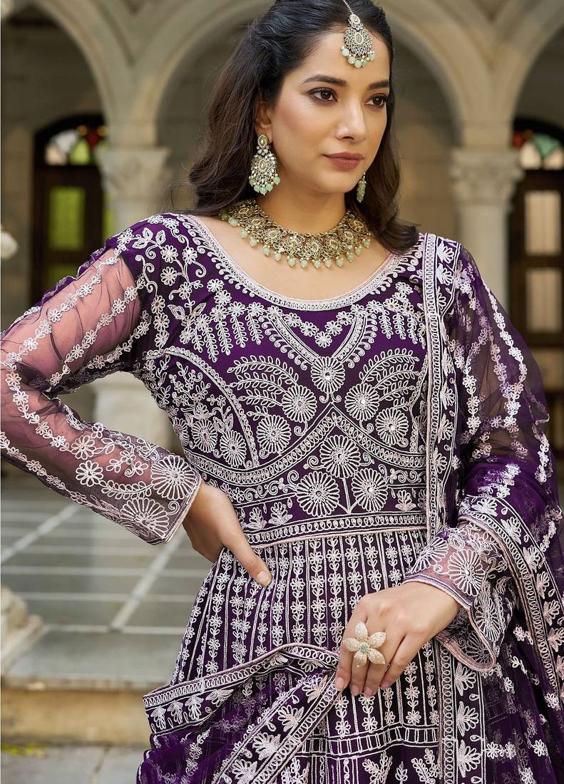 | Product Name | Purple Dori Stonw Work Net Fabric Full Stitched Wedding Party Wear Anarkali Gown Salwar Suit With Net Dupatta | |