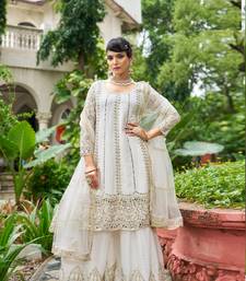 | Product Name | White Real Mirror Chinon Silk Wedding Party Wear Sharara Salwar Suit With Net Dupatta Full Stitched Free Size | |