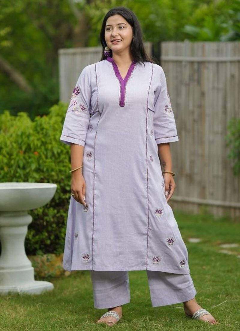 Product Name | Purple Lotus Hand Embroidered Cotton Kurta Set | |