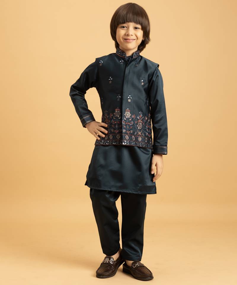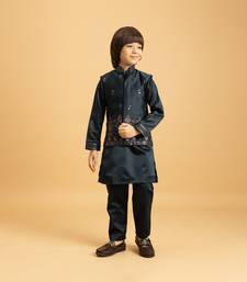 | Product Name | Dark Green Satin Thead With Sequins Embroidered Work Wedding Function Festival Party Boys Straight Kurta Pant Koti | |