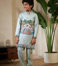 | Product Name | Pista Green Viscose Silk Thead With Sequins Embroidered Work Wedding Festival Party Boys Straight Kurta Pant Koti | |