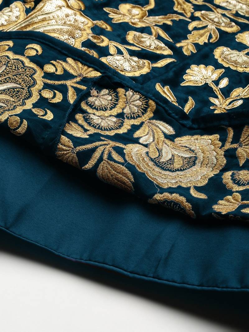 | Product Name | Turquoise Zari Dori & Sequins Embroidered Velvet Semi Stitched Lehenga Choli | |