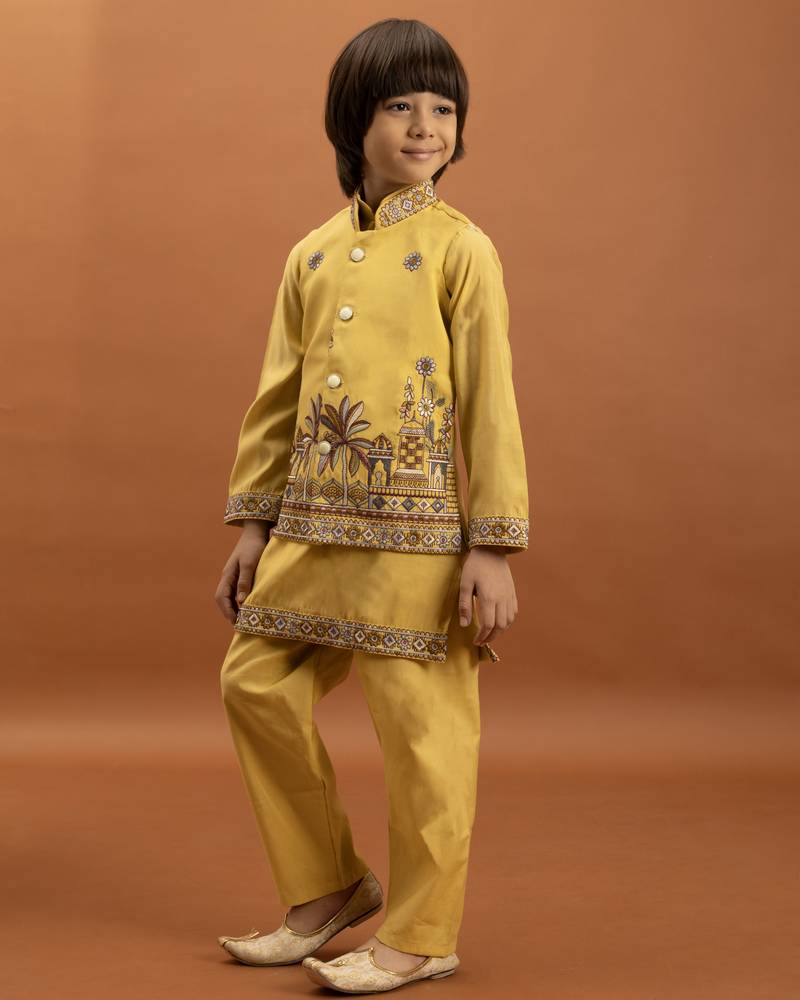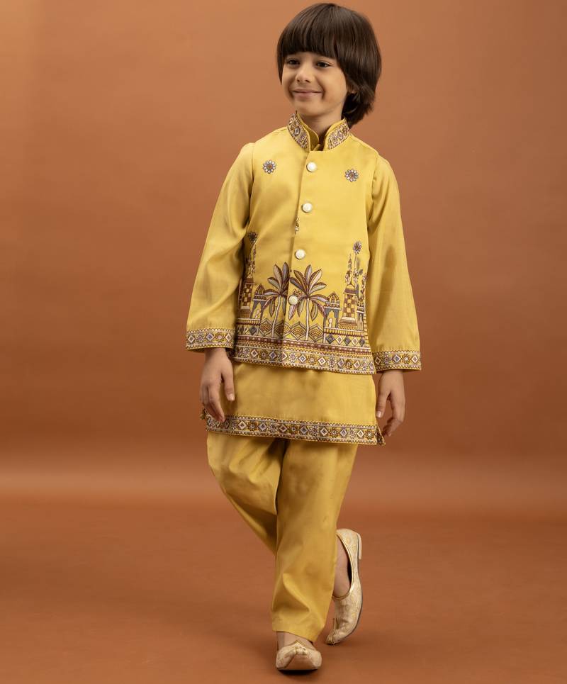 | Product Name | Yellow Viscose Silk Nehru Jacket Set With Sequins Embroidered Work | |