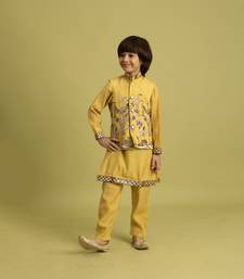 Yellow viscose silk boys kurta pajama with embroidered jacket for festive wear