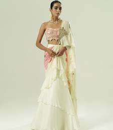Ivory embroidered georgette saree