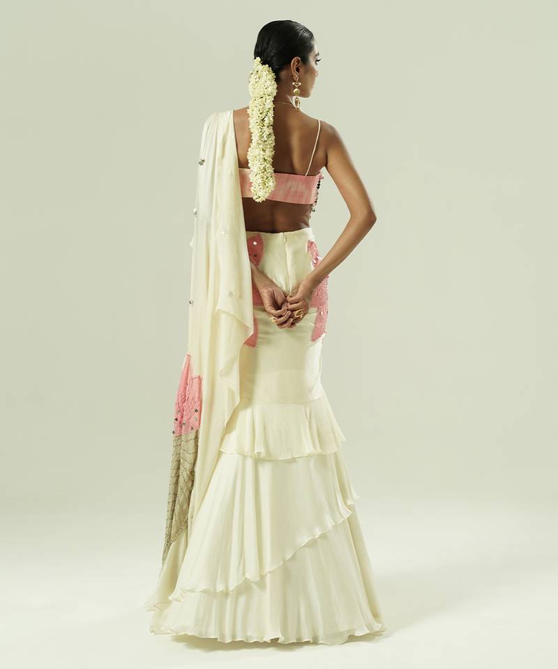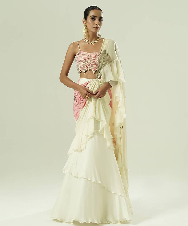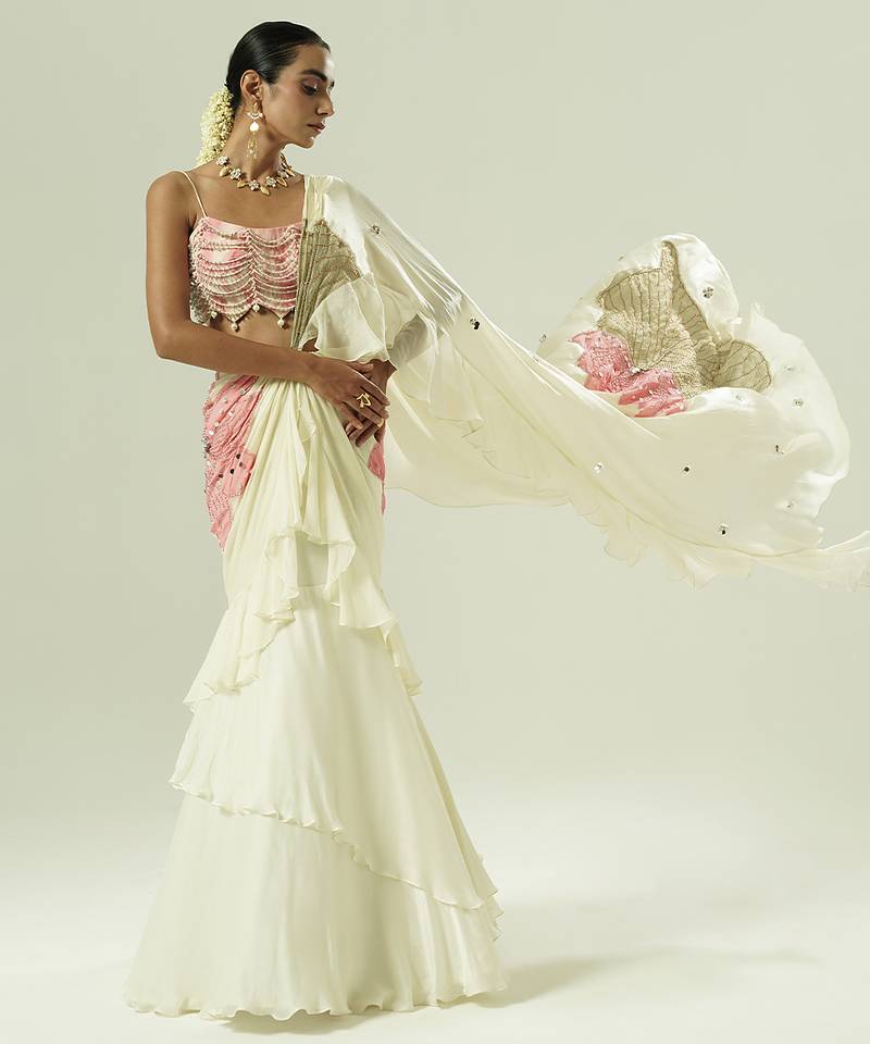 4. Ivory embroidered georgette saree