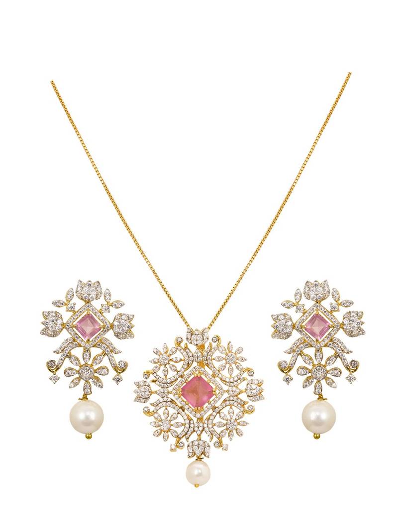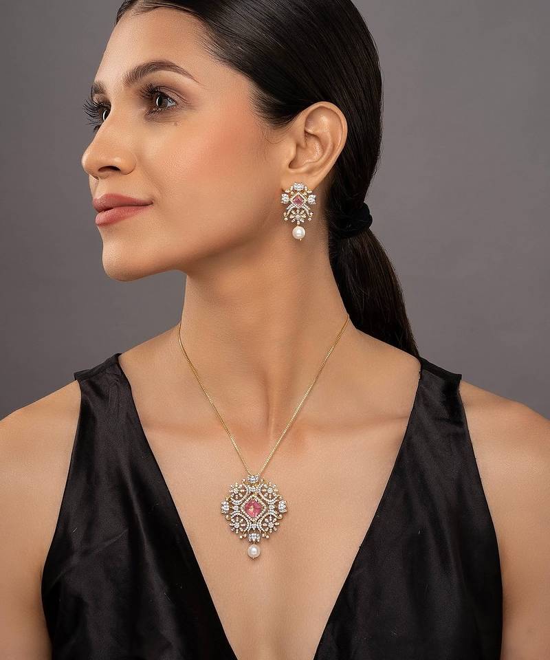| Product Name | Gold Plated Pink Stone Pendant Necklace Set In Sterling Silver | |