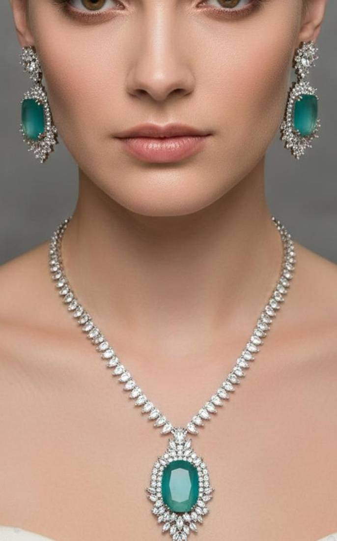 | Product Name | Green Silver Plated Necklace With Earring | |