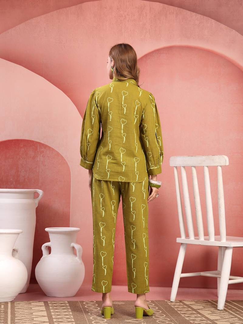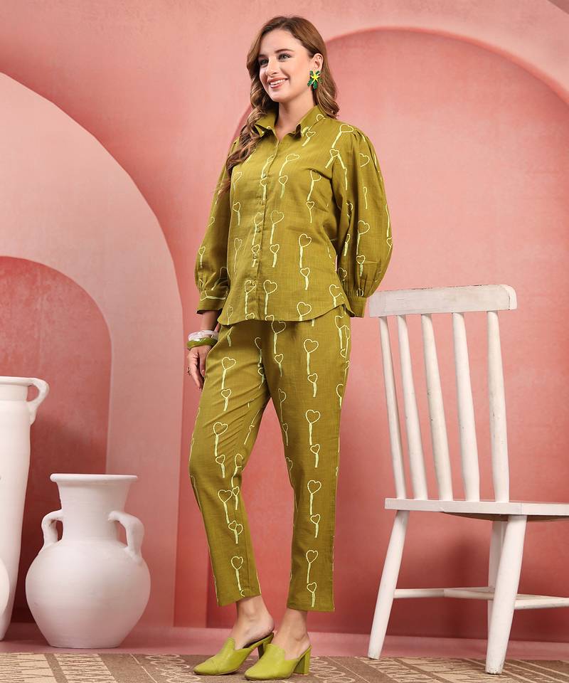 | Product Name | Women Mehndi Green Cotton Floral Printed Co Ord Sets Stitched | |