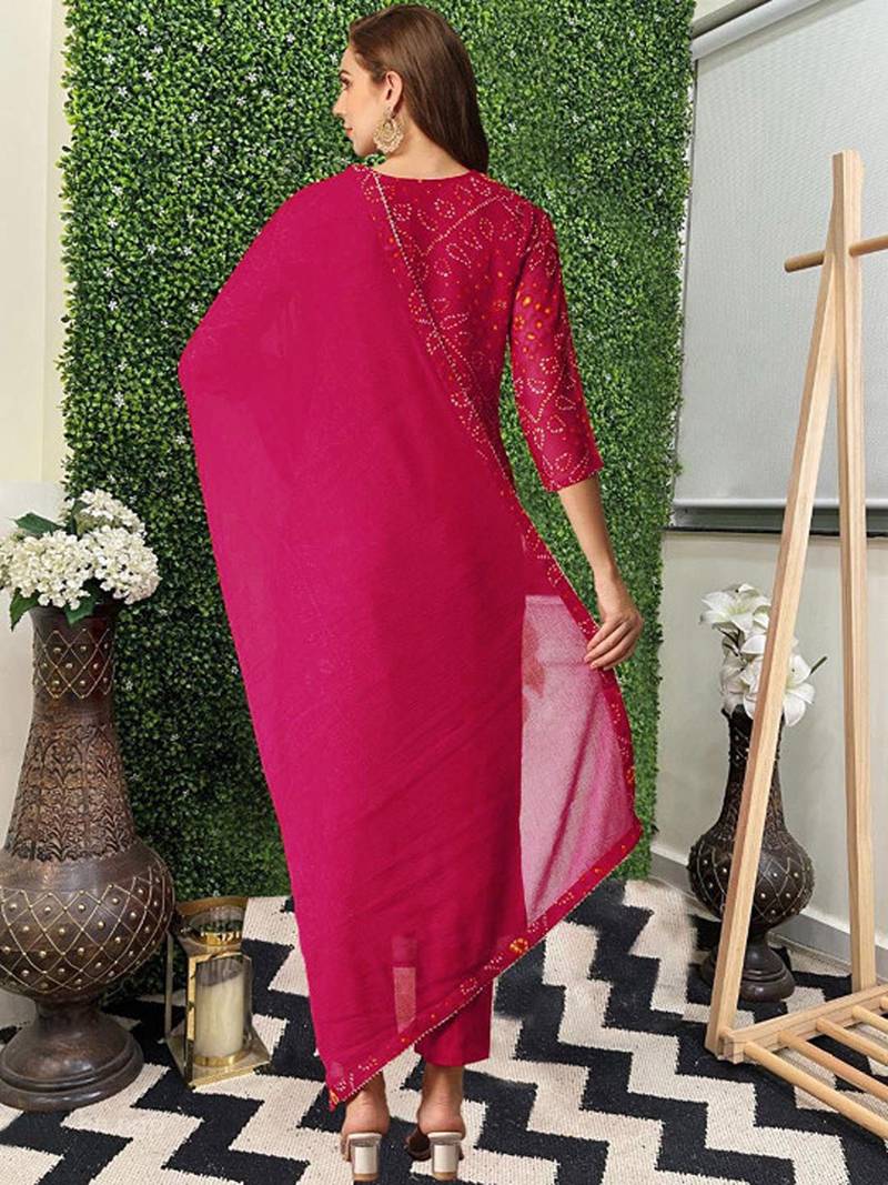| Product Name | Bandhani Printed Sequinned Straight Kurta With Trousers & Dupatta | |