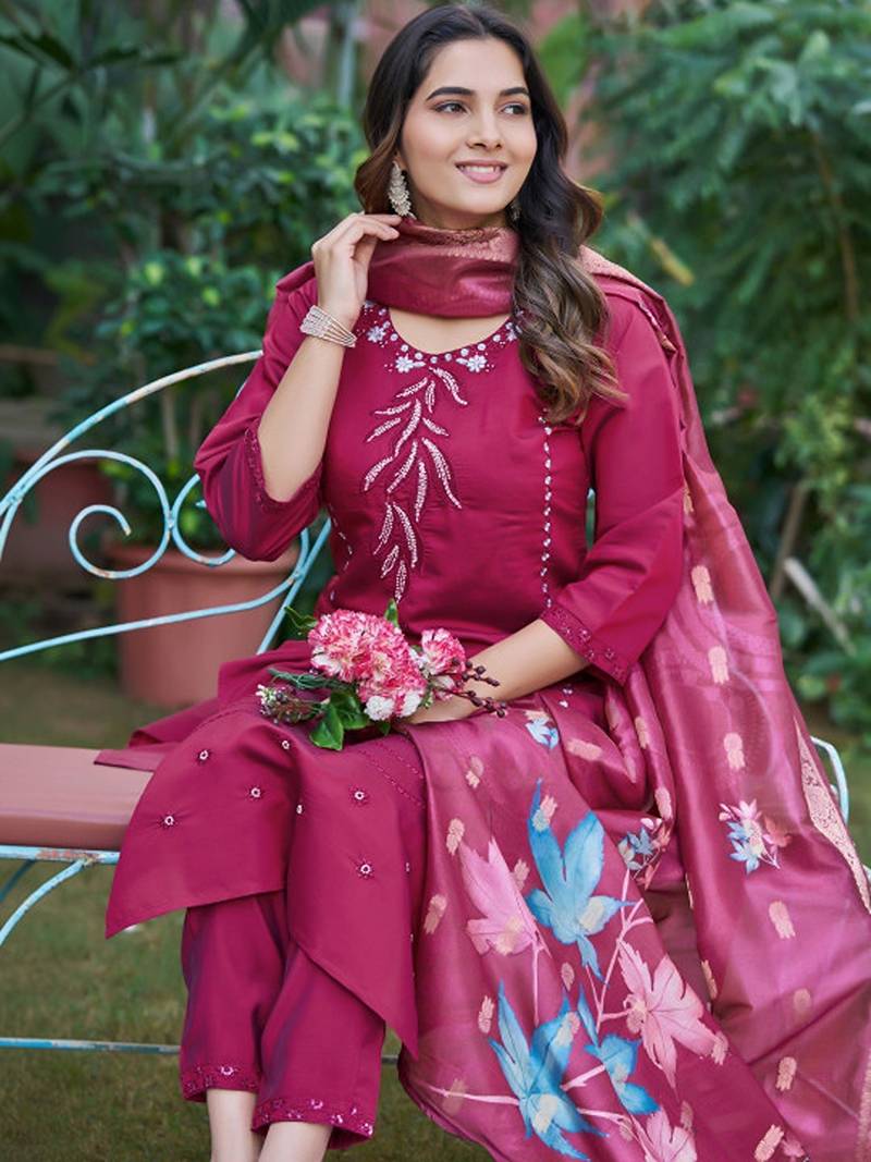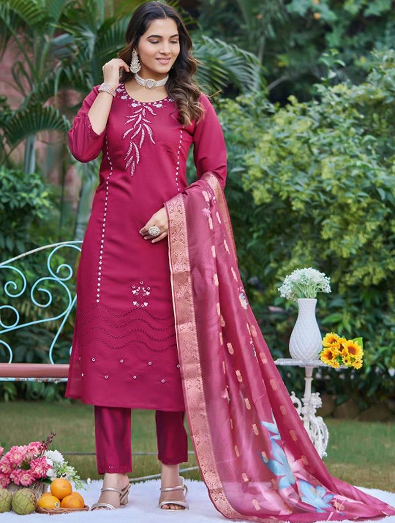 | Product Description | Magenta Embroidered Kurta With Trousers With Dupatta Kurta Design: |