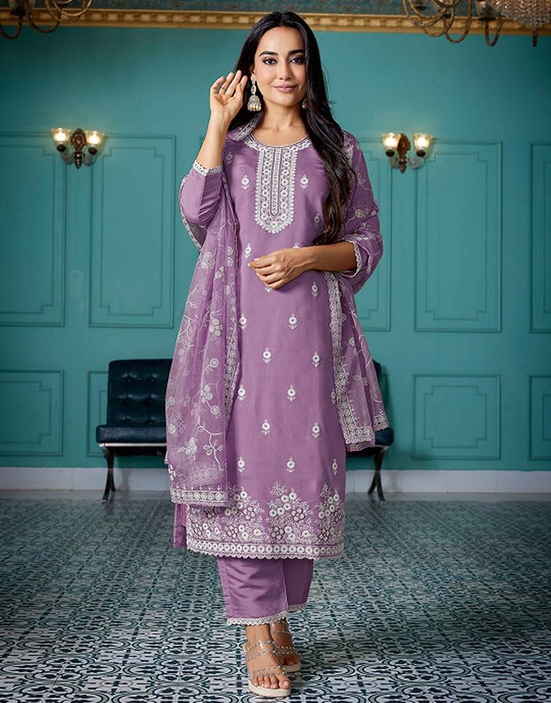 | Product Description | Purple & White Embroidered Kurta With Trousers With Dupatta Kurta Design: |
