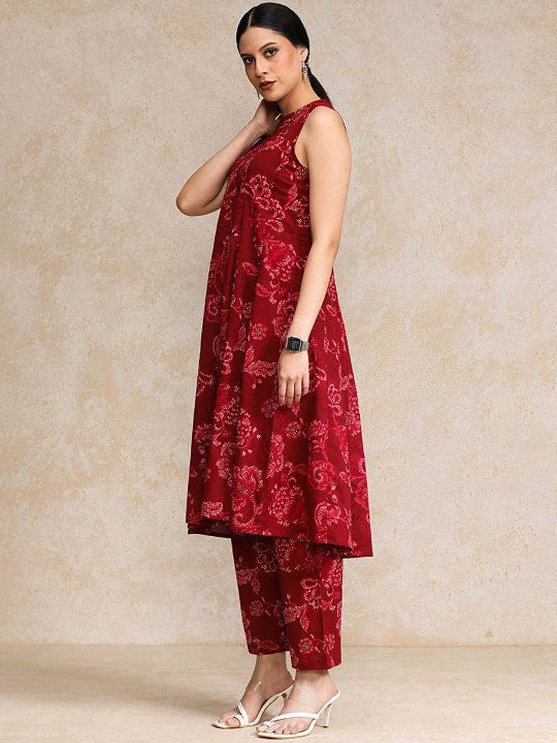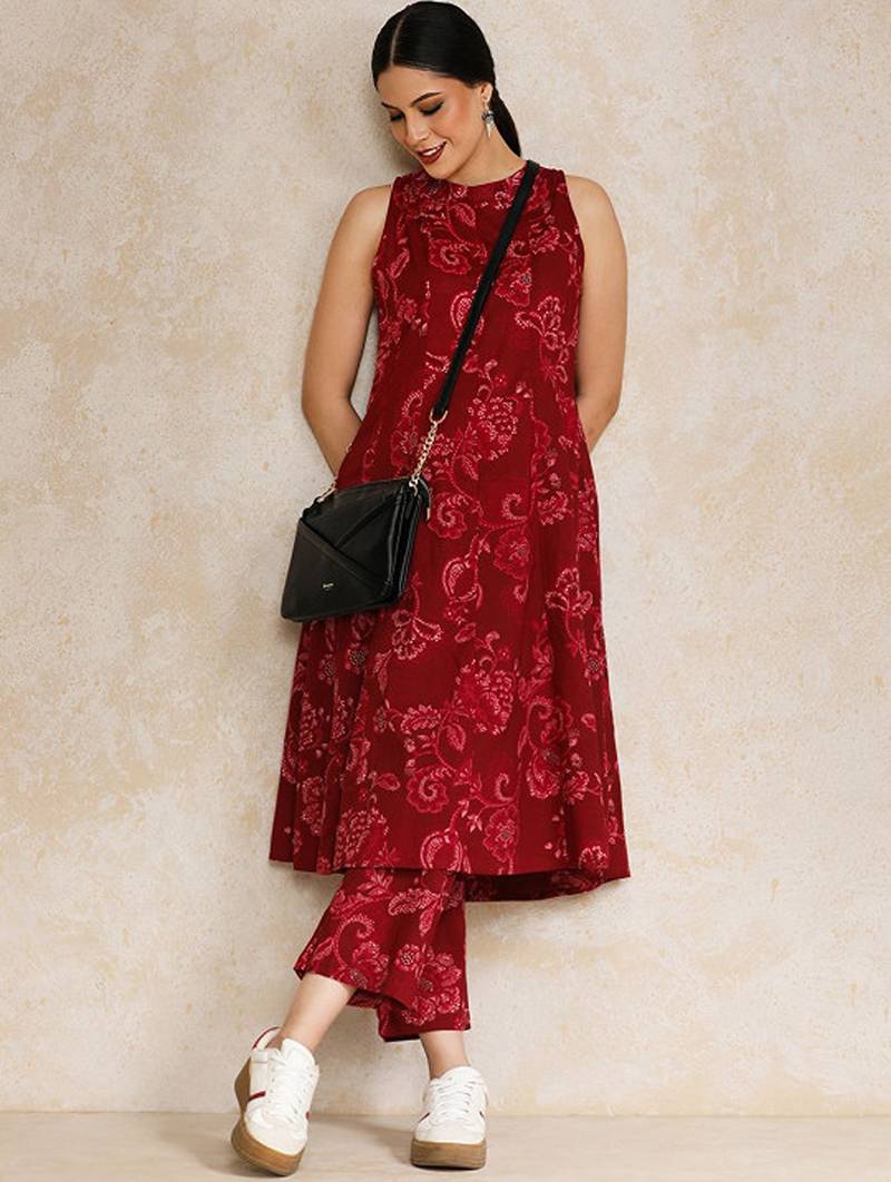 | Product Description | Red Printed Kurta With Trousers Kurta Design: |