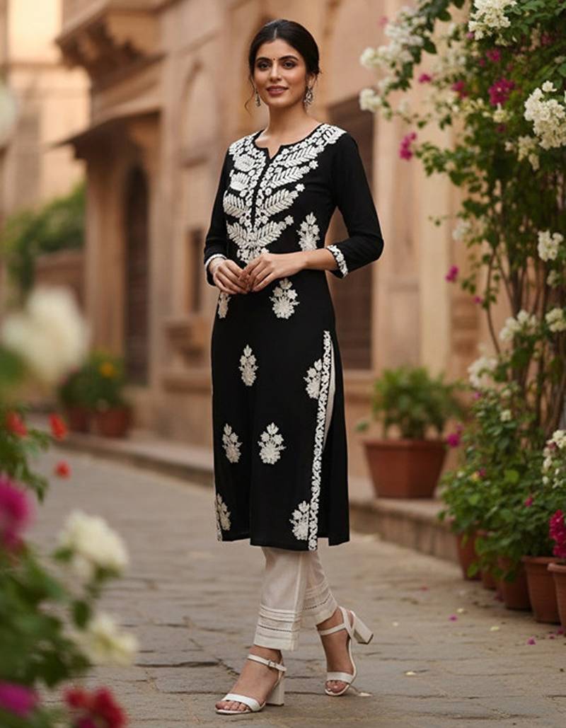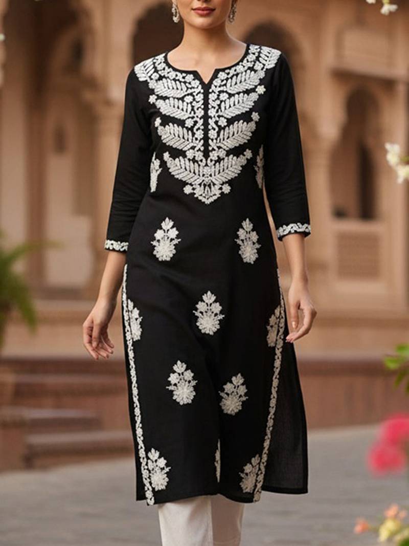 | Product Name | Floral Embroidered Notch Neck Chikankari Straight Kurta | |