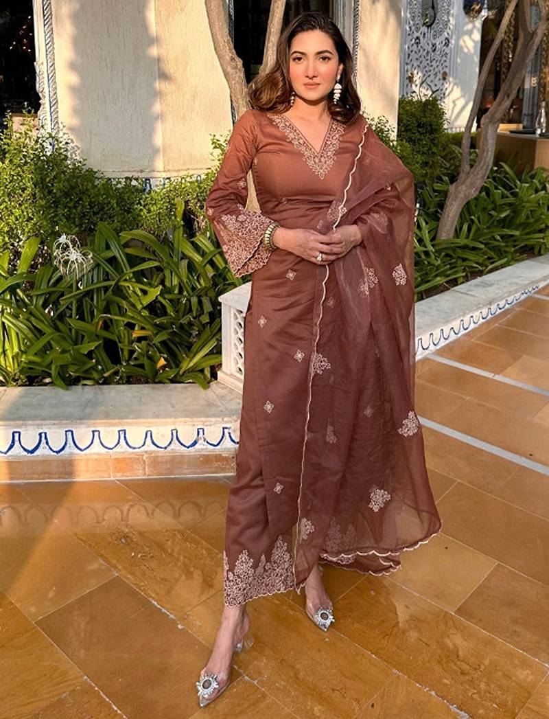 | Product Description | Brown Embroidered Kurta With Trousers With Dupatta Kurta Design: |