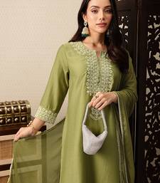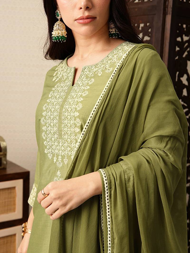 | Product Description | Product Details About The Brand: Everything Created At The House Of Pataudi Is Inspired By The Modern Indian Sensibility. We Believe In A Seamless Weave Of The Past With The Present. Our Carefully Crafted Pieces Give Expression To A Refined And Effortless Way Of Life. About The Collection: Jashn This Line Draws Upon Traditional Costumes For Inspiration While Rendering An India Modern Aesthetic. Rich Textiles With Minimal Yet Exquisite Zari Embroideries. Ideal For Celebrating The Evening With A Contemporary Take On Festive Attire. Green Yoke Design Kurta With Palazzos & Dupatta Kurta Design: |