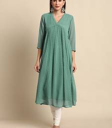 Green chiffon self design flared kurta