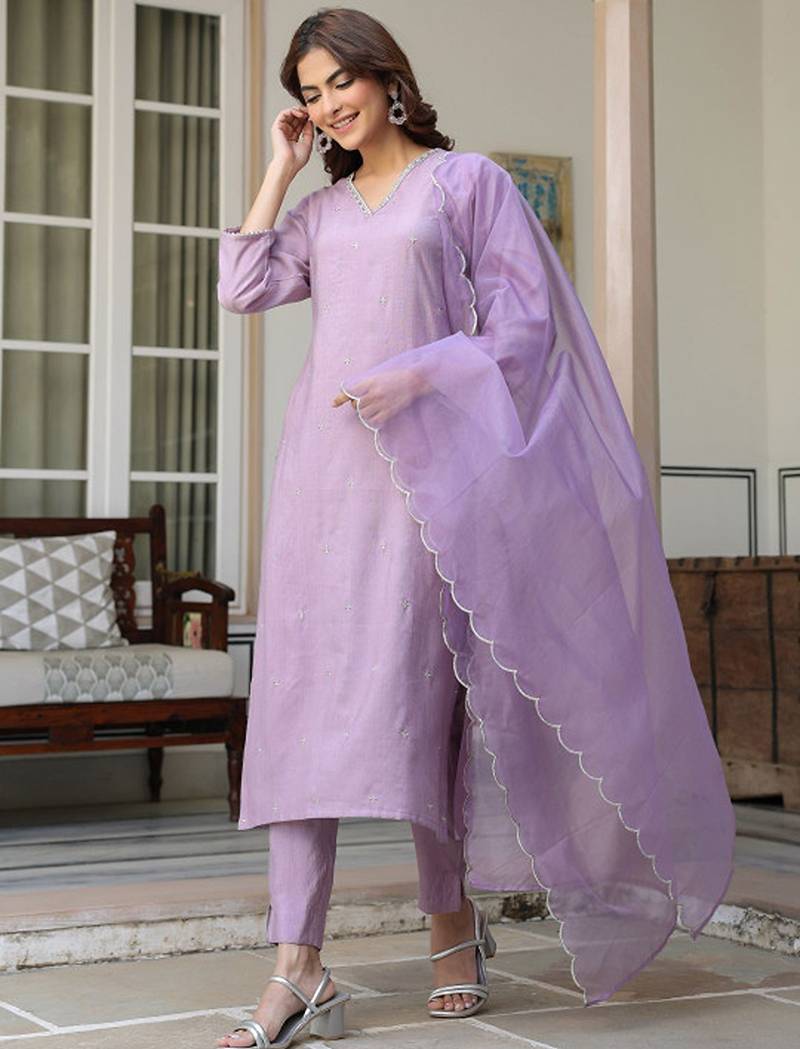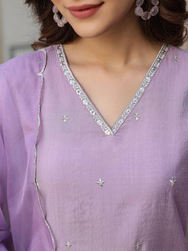 | Product Name | Lavender Chinon Embellished Kurta With Pant And Dupatta | |