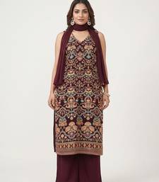 Maroon embroidered crepe kurta set