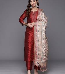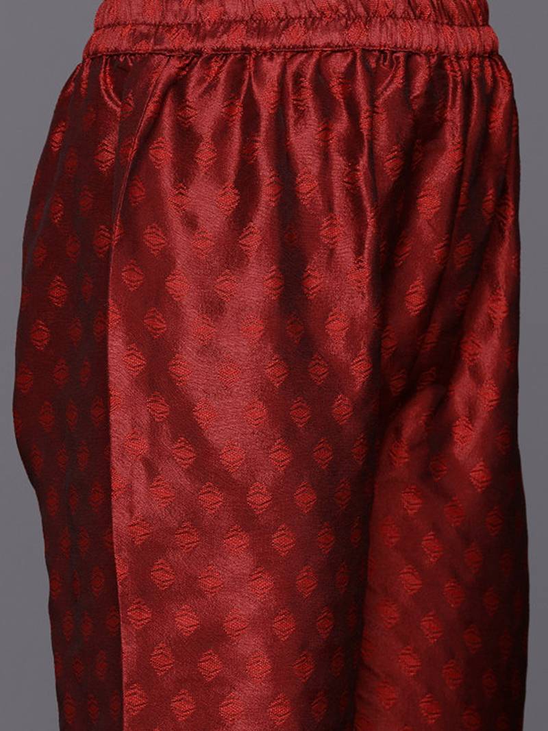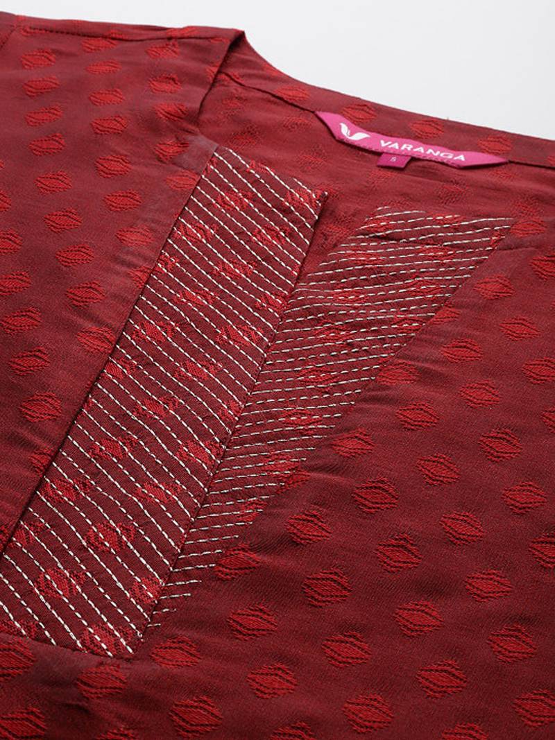 | Product Name | Maroon Zari Work Textured Kurta With Trouser And Printed Dupatta | |