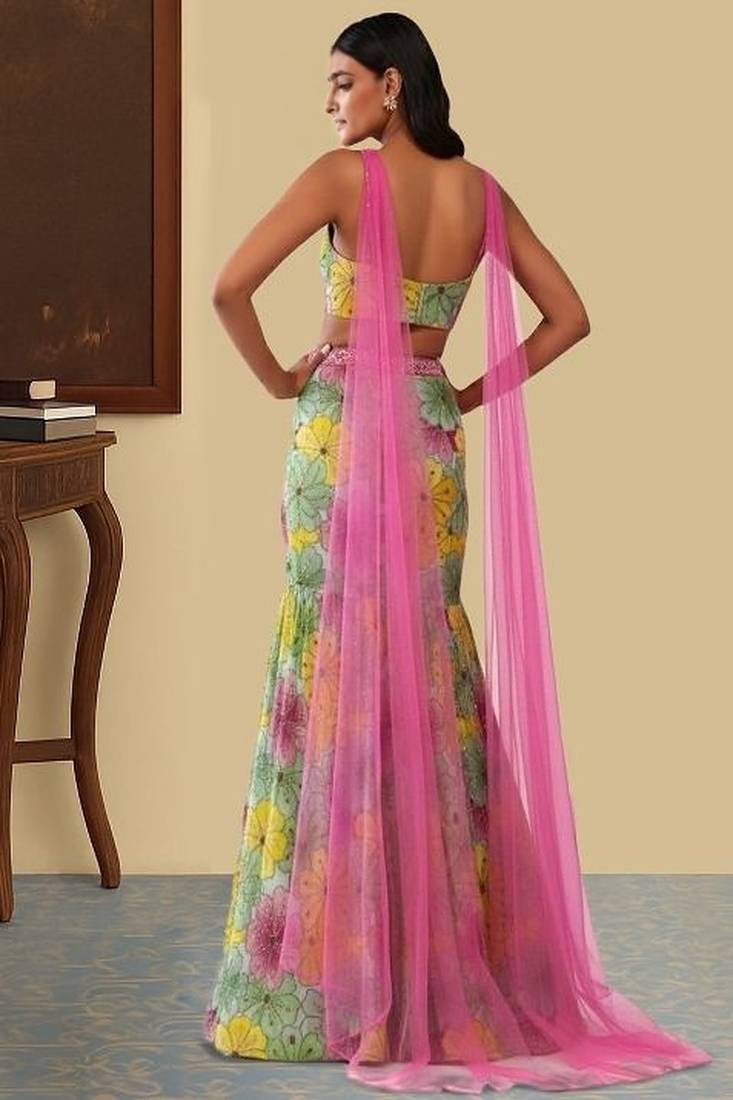 | Product Name | Mint Green Floral Print Crepe Lehenga Set | |