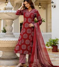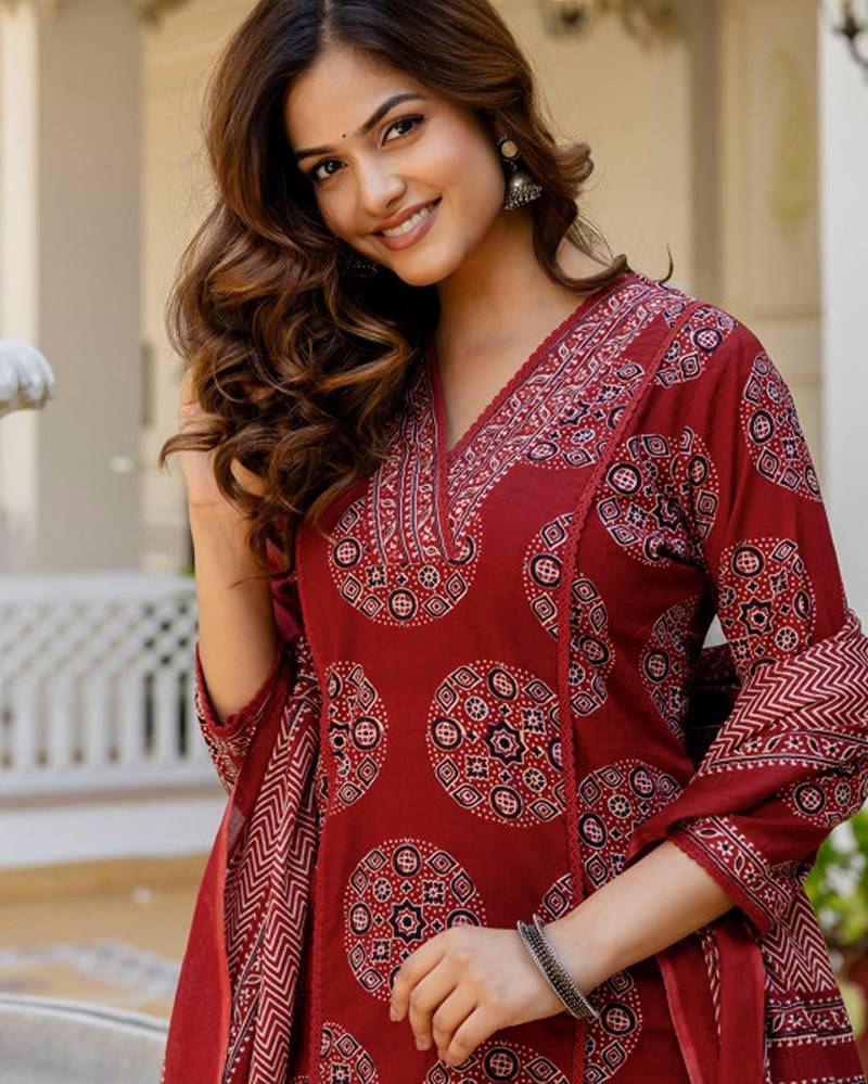 | Product Description | Maroon Printed Kurta With Palazzos With Dupatta Kurta Design: |