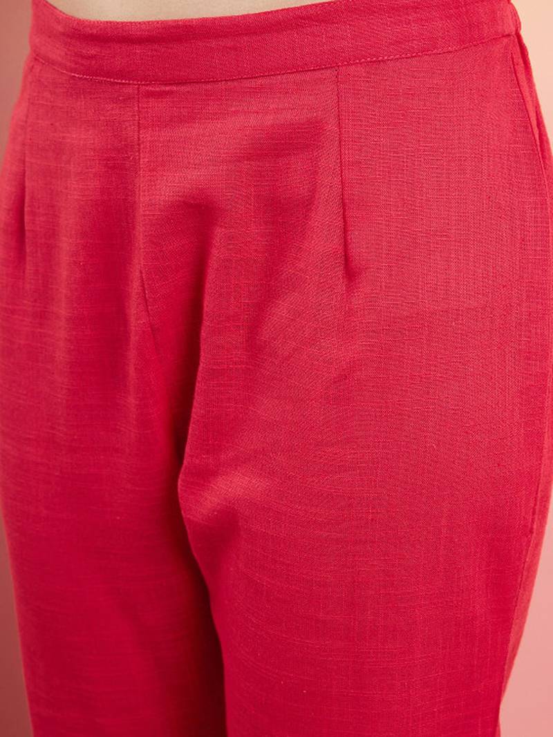 | Product Description | This Kurta Set Consists Of Kurta, Trousers And Dupatta Kurta Design Red Kurta Solid V Neck Three Quarter, Regular Sleeves Pathani Shaped Calf With Curved Hem Machine Weave Regular Pure Cotton Trousers Design: Red Solid Trousers Elasticated Waistband Slip On Closure |