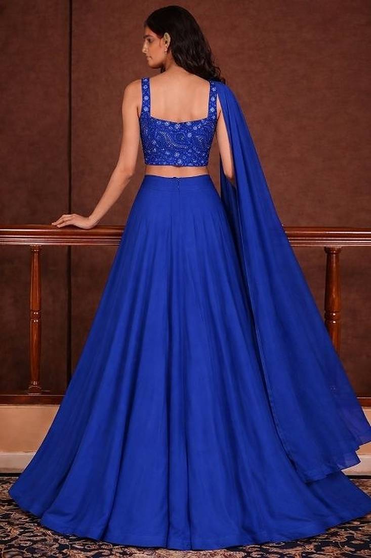 Royal blue embroidered georgette lehenga set