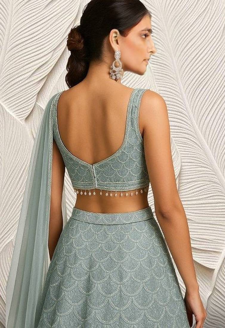 | Product Name | Sage Green Embroidered Net Lehenga Set | |