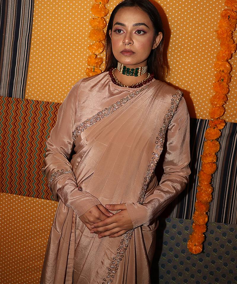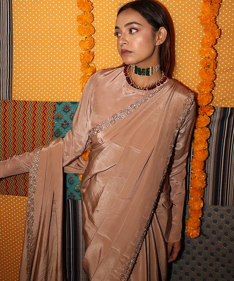 | • | Saree | : | Color- Beige / Fabric- Satin |