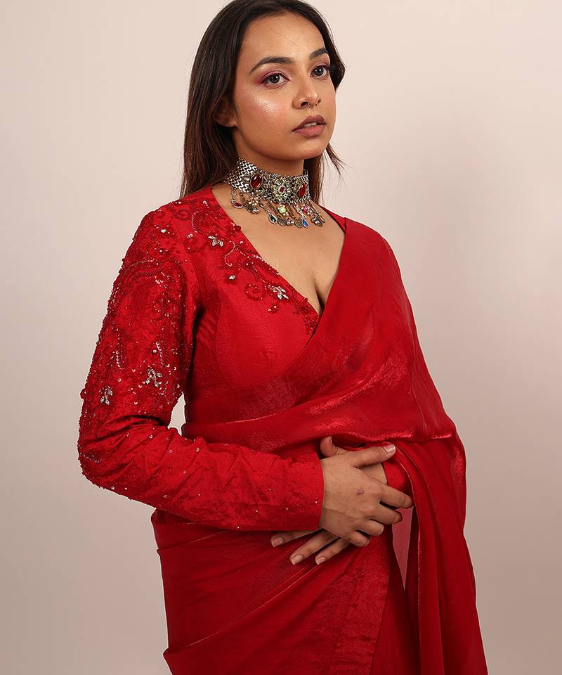 | • | Blouse | : | Color- Red / Fabric- Silk |