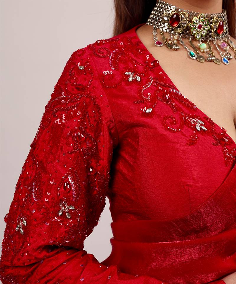 | Product Description | This Red Embroidered Crepe Saree Exudes Timeless Elegance And Festive Charm. Crafted From Lightweight Crepe Fabric, It Features Intricate Embroidery That Adds A Refined Touch. Perfect For Weddings And Special Occasions, It Drapes Gracefully And Enhances Traditional Looks With Sophisticated Appeal.