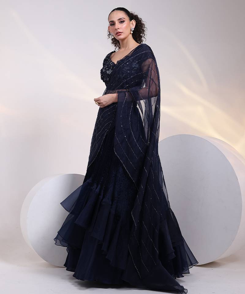 | Product Description | Blue Embroidered Chiffon Lehenga Set Crafted With Delicate Detailing And A Graceful Flow. Featuring A Stylish Blouse, Fluid Skirt, And Sheer Dupatta, This Elegant Ensemble Is Perfect For Festive Occasions, Receptions, And Evening Celebrations With A Modern Yet Timeless Appeal.