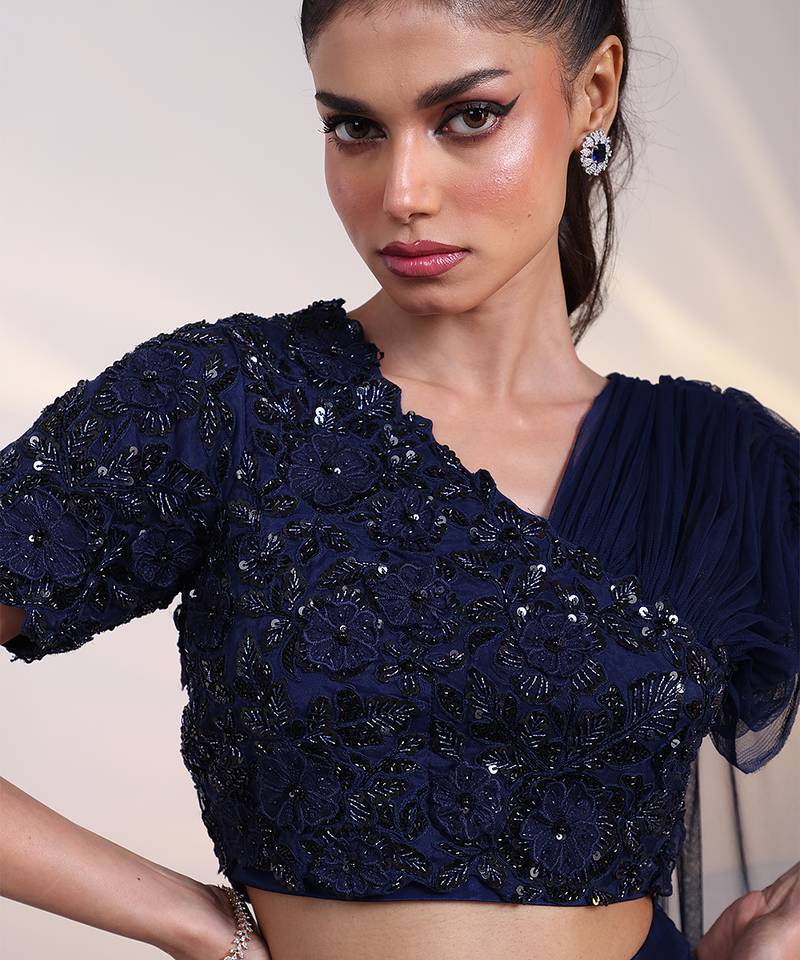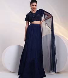 Product Name Blue Embroidered Chiffon Lehenga Set