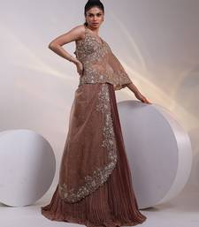 Brown embroidered chiffon lehenga set