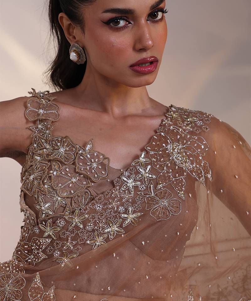 | Product Description | Brown Embroidered Chiffon Lehenga Set Designed With Delicate Embellishments And A Fluid Silhouette. Paired With A Graceful Blouse And Sheer Dupatta, This Elegant Ensemble Is Ideal For Festive Gatherings, Receptions, And Evening Celebrations With Understated Sophistication.