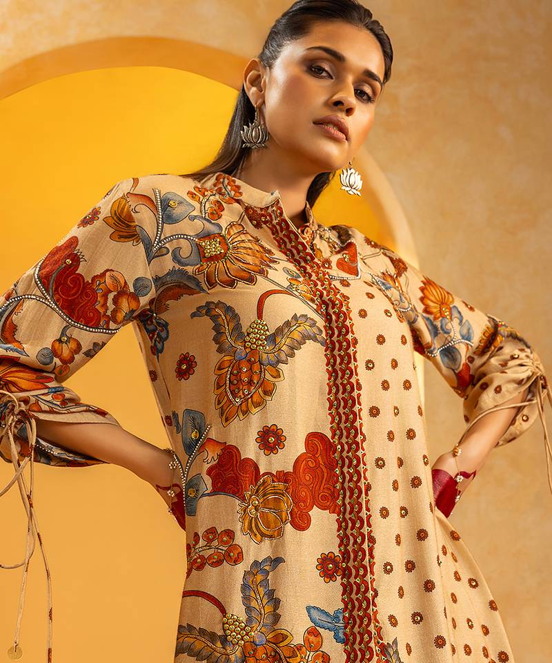 Product Name | Beige Floral Printed Silk Kurta Set | |