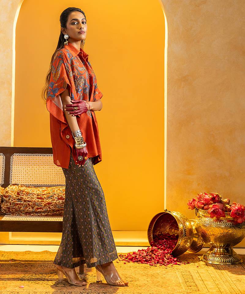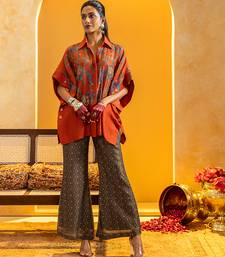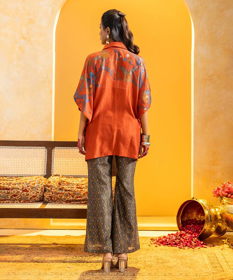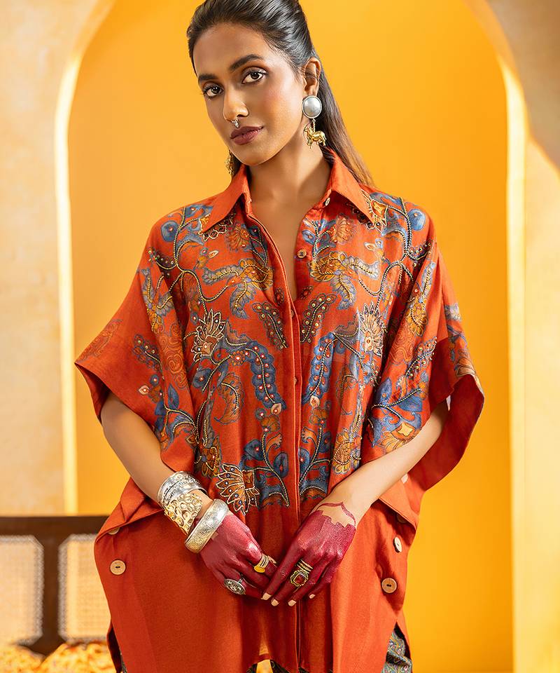 Product Name Rust Floral Printed Chanderi Co Ord Set