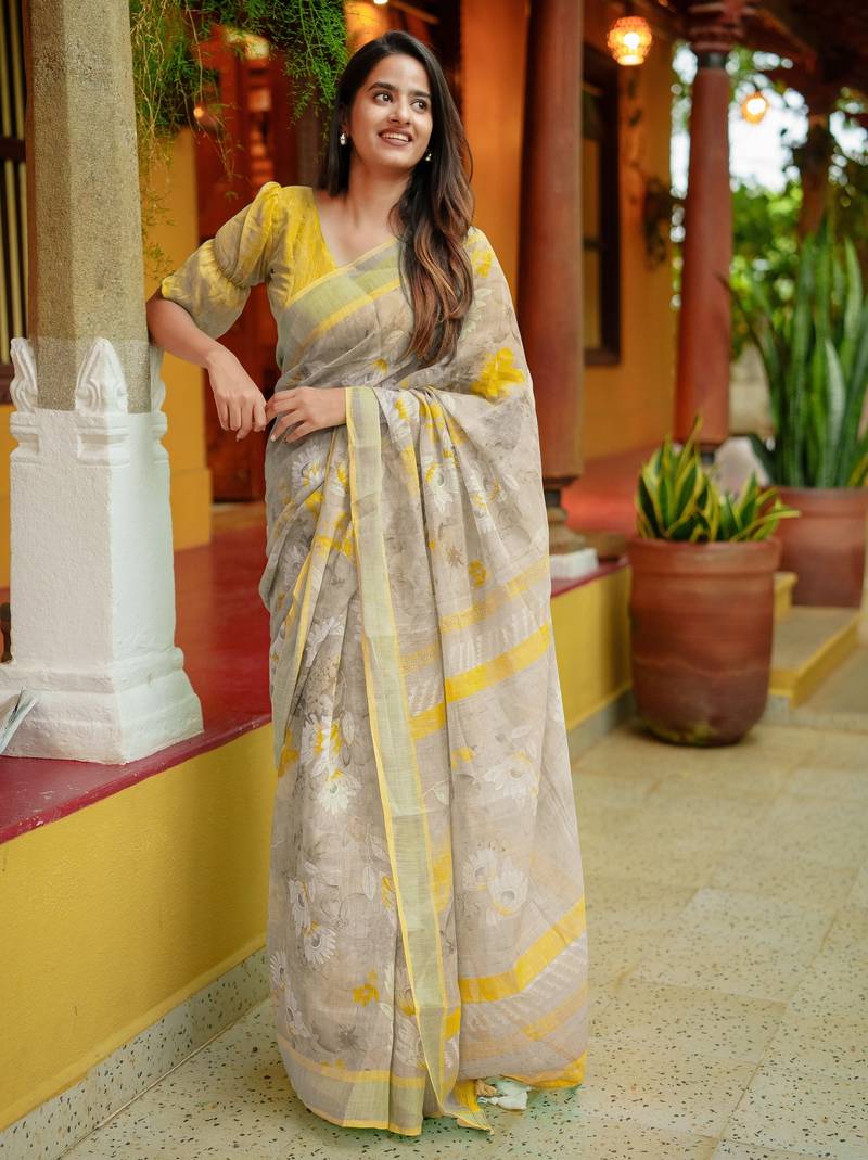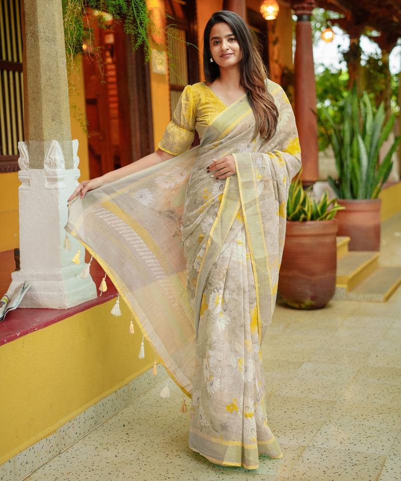 This Is A Beige Beautifully Designed Indian Traditional Ethnic Casual/Party Wear Sarees Made Of High Quality Cotton Blend Having Beautiful All Over Design Floral Print Zari Woven Border With Tassels .This Saree Is A Ideal For Festivals, Parties And Social/Friends/Family Get Together, Ceremonies Or Rituals, Business Functions Wherever You Want To Flaunt Your Style.