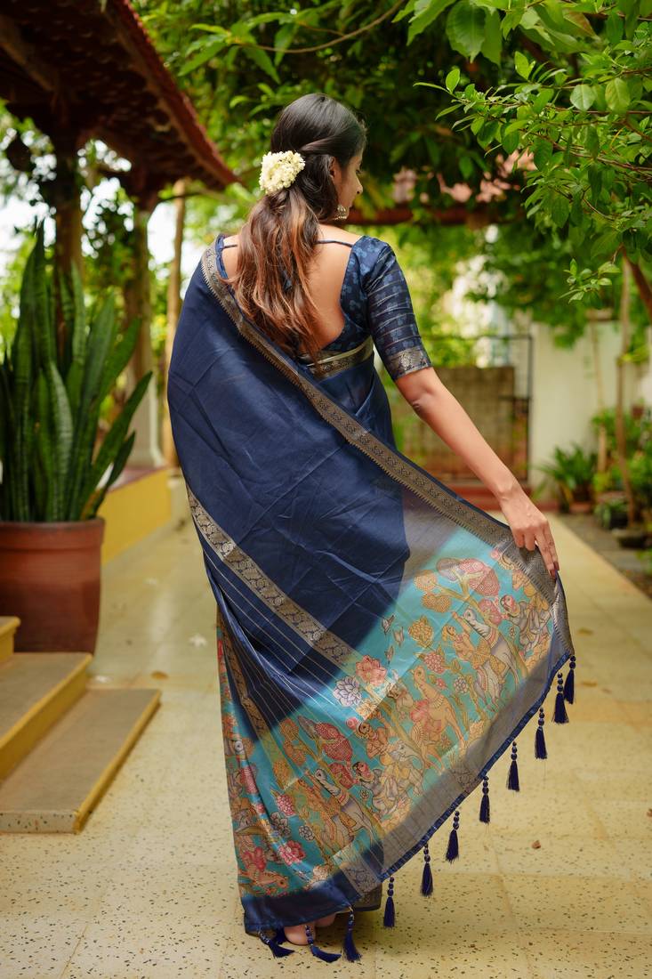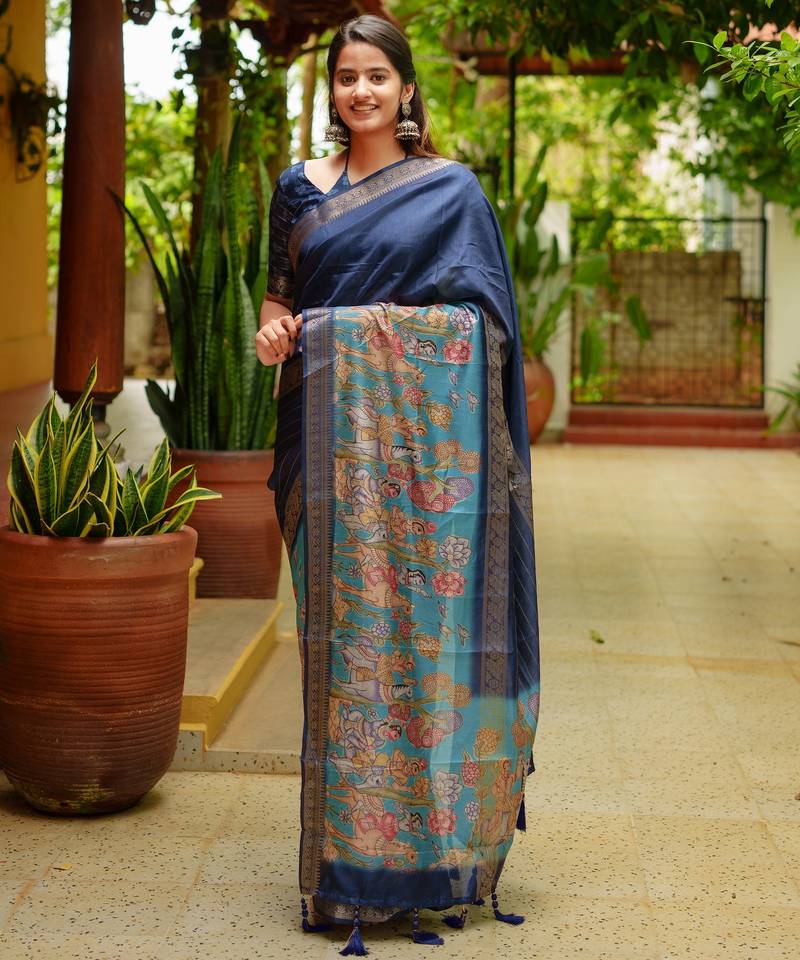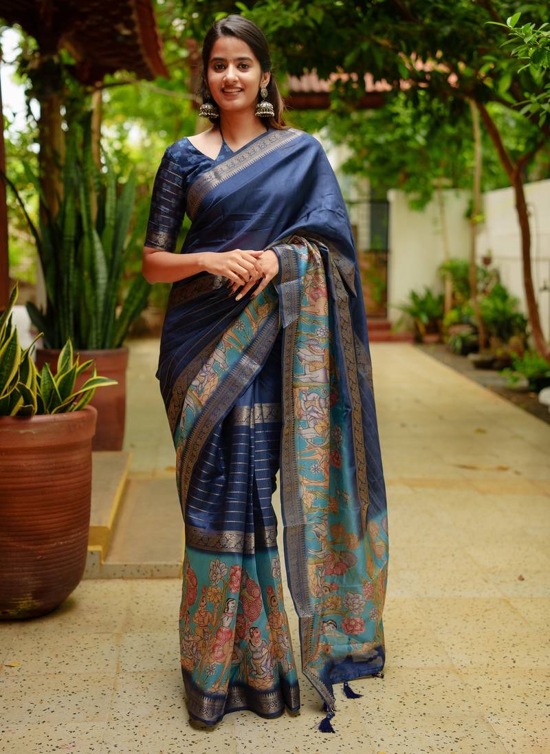 | Product Description | This Is A Dark Blue Beautifully Designed Indian Traditional Ethnic Party/Festive Wear Sarees Made Of High Quality Cotton Silk,Cotton Blend Having Beautiful All Over Design Madhubani Print/Zari Line Golden Zari Woven Border With Tassels .This Saree Is A Ideal For Festivals, Parties And Social/Friends/Family Get Together, Ceremonies Or Rituals, Business Functions Wherever You Want To Flaunt Your Style. |