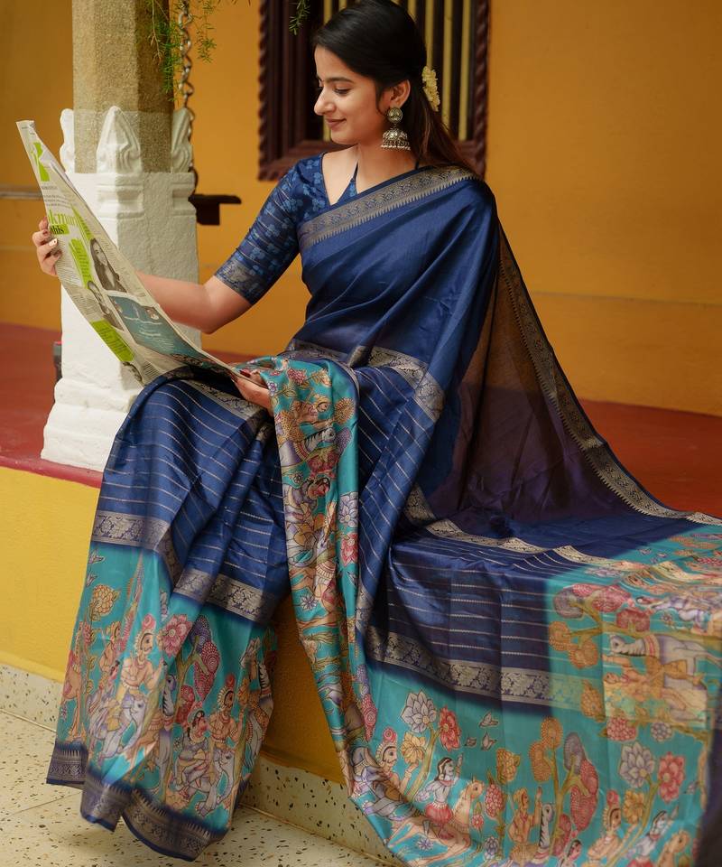 | Product Name | Blue Madhubani Print Golden Zari Border Cotton Silk Saree With Unstiched Blouse Piece | |