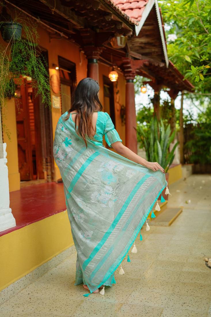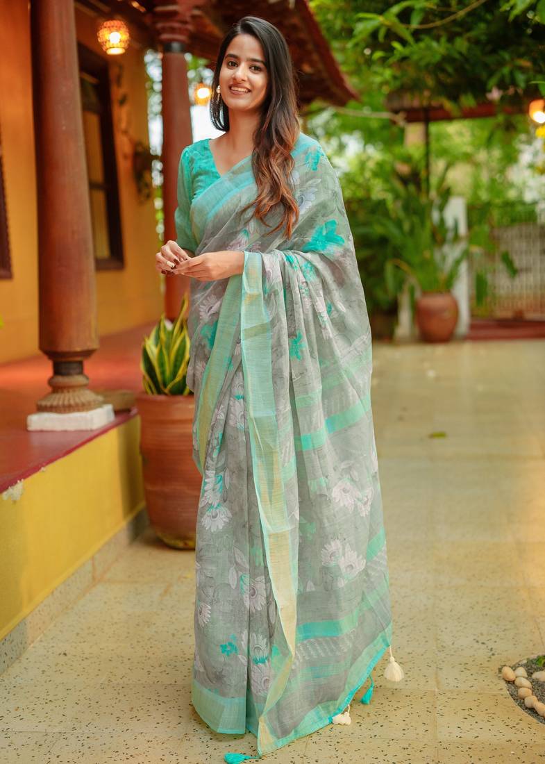 | Product Name | Olive Green Floral Print Zari Woven Border Cotton Blend Saree With Unstiched Blouse Piece | |