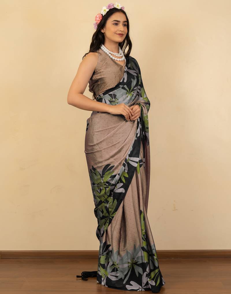| Product Description | This Is A Dusty Peach Beautifully Designed Indian Traditional Ethnic Casual/Party Wear Sarees Made Of High Quality Chiffon Having Beautiful All Over Design Floral Print, Rhinstone Embellishement /Tassels .This Saree Is A Ideal For Festivals, Parties And Social/Friends/Family Get Together, Ceremonies Or Rituals, Business Functions Wherever You Want To Flaunt Your Style. |
