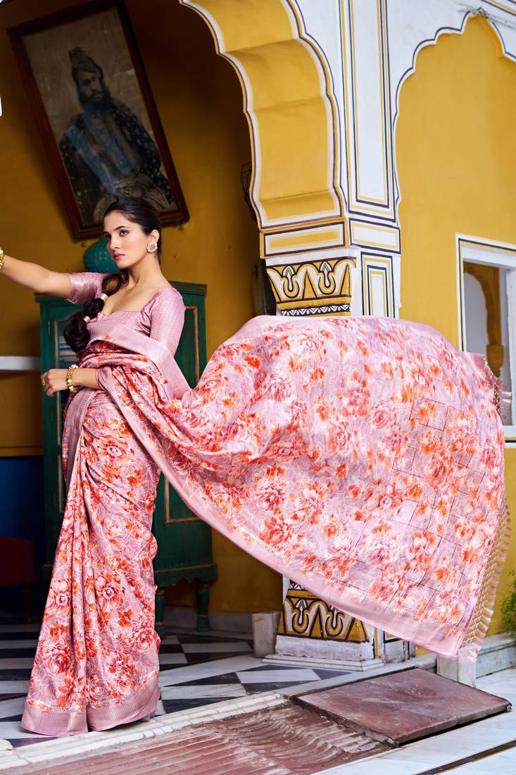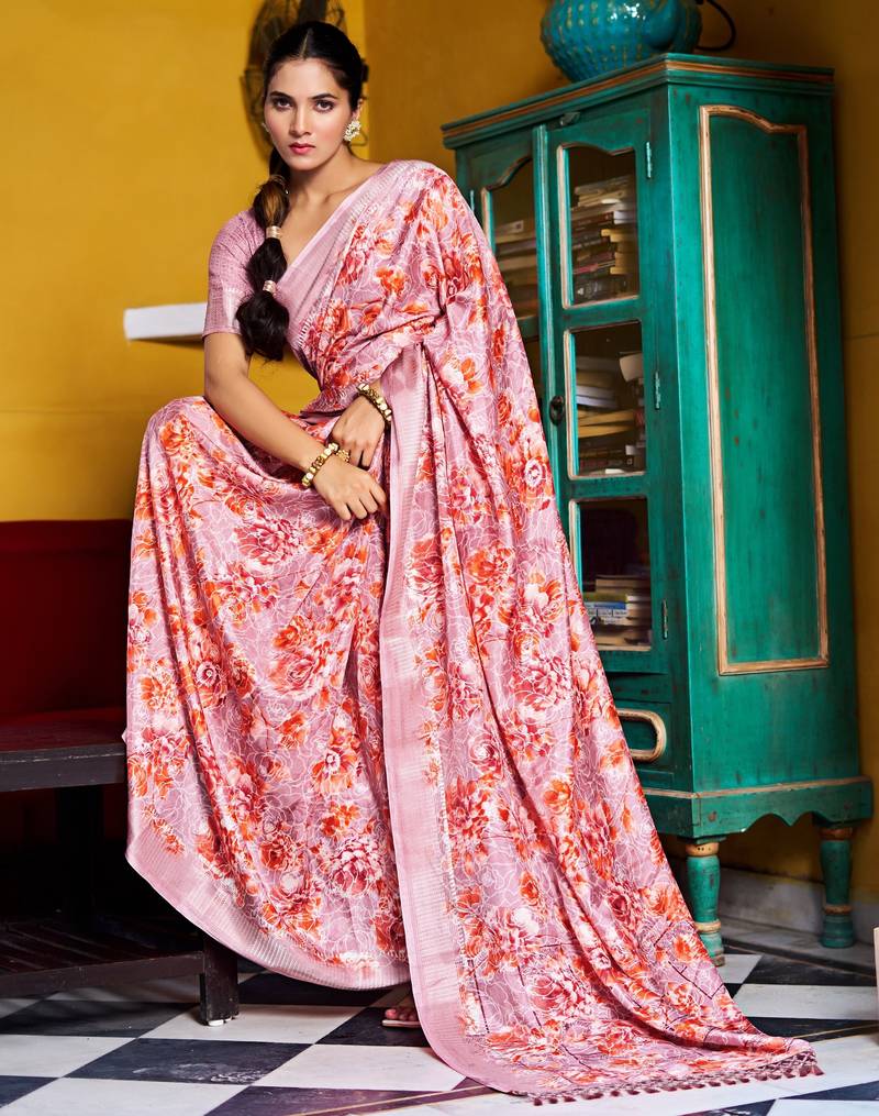 | Product Description | This Is A Dusty Pink Beautifully Designed Indian Traditional Ethnic Party/Festive Wear Sarees Made Of High Quality Silk Blend Having Beautiful All Over Design Floral Print Zari Woven Border With Tassels .This Saree Is A Ideal For Festivals, Parties And Social/Friends/Family Get Together, Ceremonies Or Rituals, Business Functions Wherever You Want To Flaunt Your Style. |