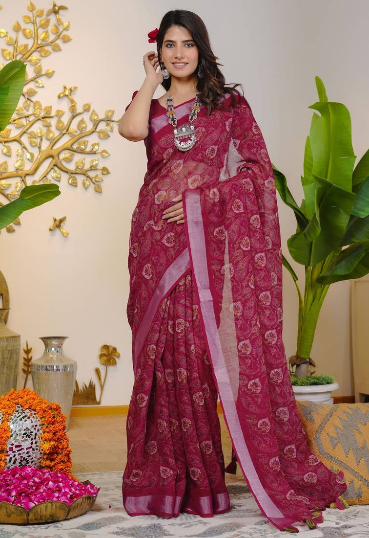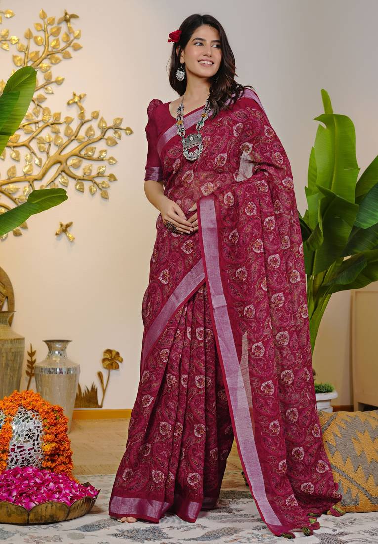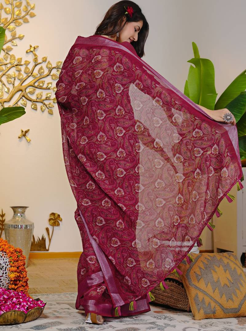 | Product Description | This Is A Dark Pink Beautifully Designed Indian Traditional Ethnic Casual/Party Wear Sarees Made Of High Quality Cotton Blend Having Beautiful All Over Design Paisley Print/Kalamkari Print Zari Border With Tassels .This Saree Is A Ideal For Festivals, Parties And Social/Friends/Family Get Together, Ceremonies Or Rituals, Business Functions Wherever You Want To Flaunt Your Style. |