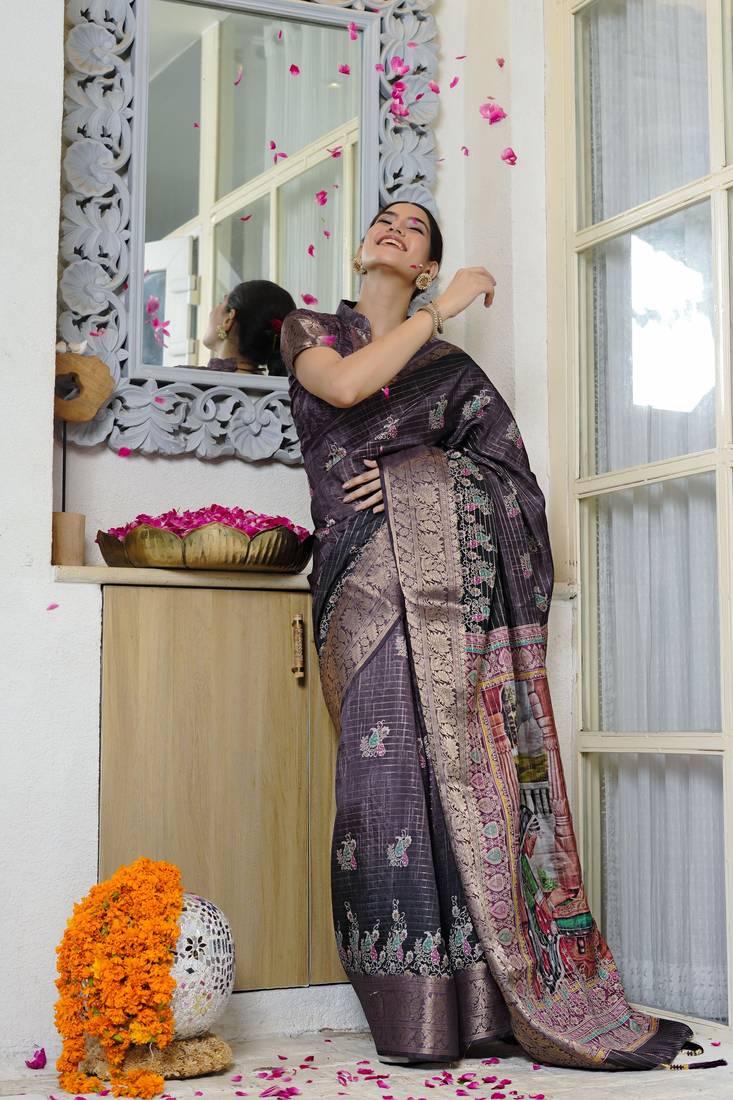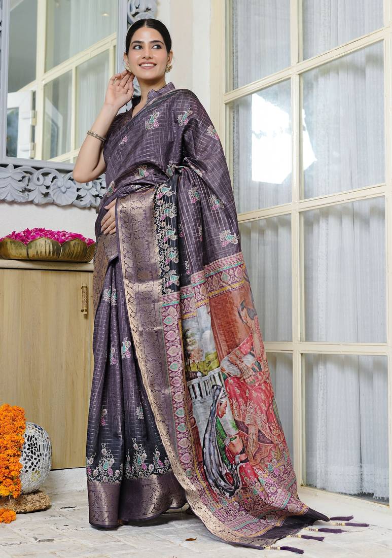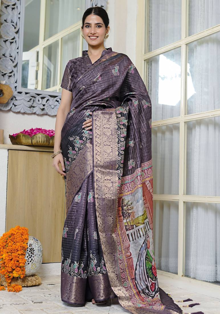 | Product Description | This Is A Dark Purple Beautifully Designed Indian Traditional Ethnic Party/Festive/ Wedding Wear Sarees Made Of High Quality Silk Blend Having Beautiful All Over Design Paisley Print/Block Print/Hiuman Figure/Kantha Work Zari Golden Weave Border With Tassles .This Saree Is A Ideal For Festivals, Parties And Social/Friends/Family Get Together, Ceremonies Or Rituals, Business Functions Wherever You Want To Flaunt Your Style. |