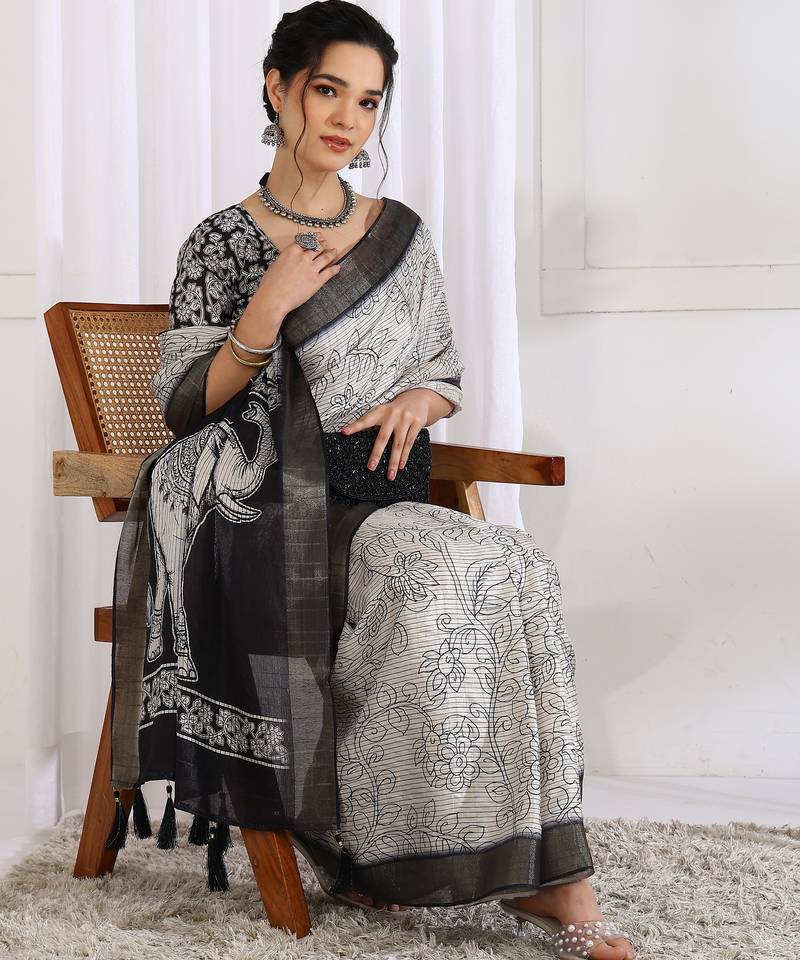 | Product Name | Party Wear Cotton Blend Floral Print Saree With Unstiched Blouse Piece White | |