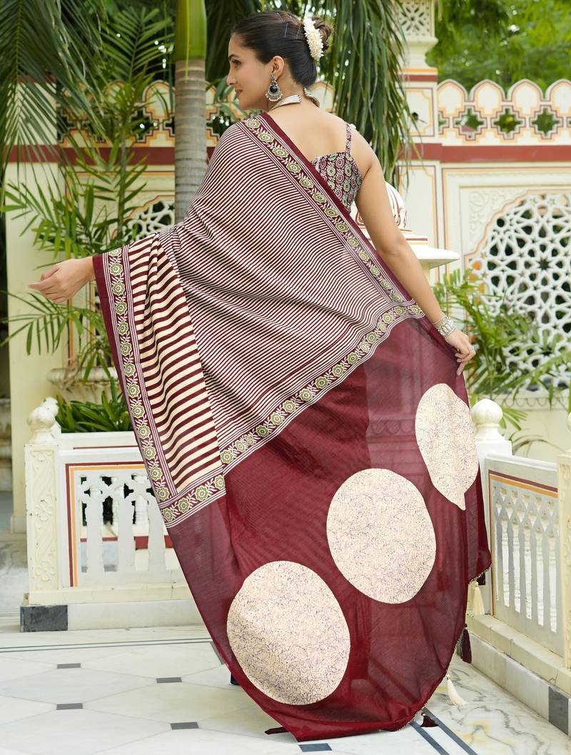 | • | Saree | : | Color- Maroon / Fabric- Cotton |