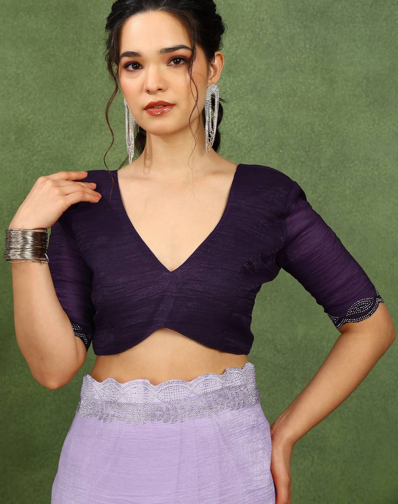 | Product Name | Party Wear Silk Blend Crush Embellished Saree With Unstiched Blouse Piece Light Lavender | |
